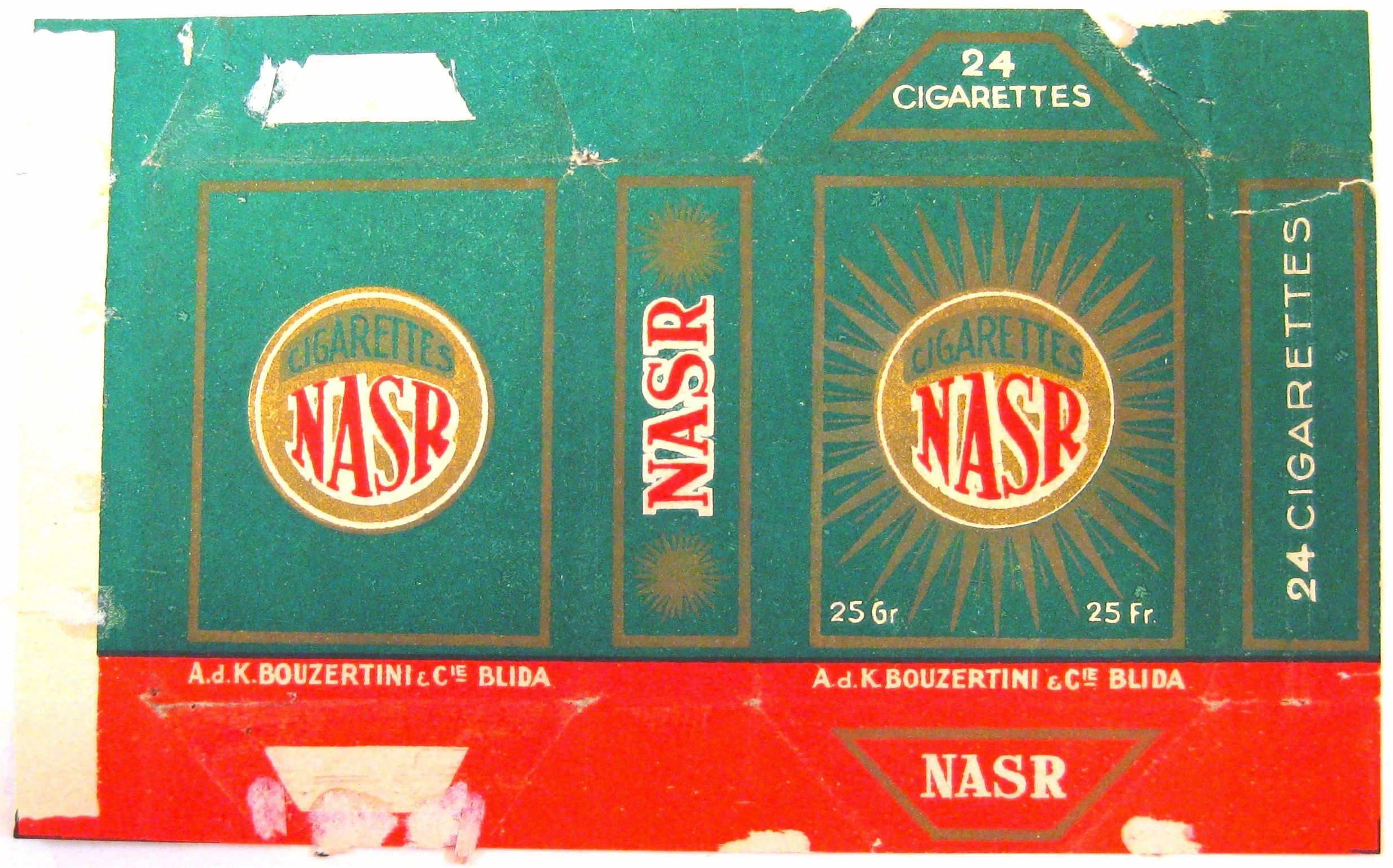 Packaging for “En-Nasr” (“Victory”) brand cigarettes, banned by the French government in Algeria in 1948 for packaging deemed “too nationalist."